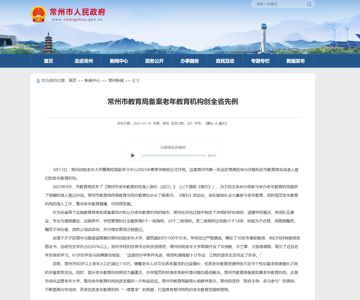 • 常州市人民政府|常州紡院老年大學暨高校銀齡學習中心2...